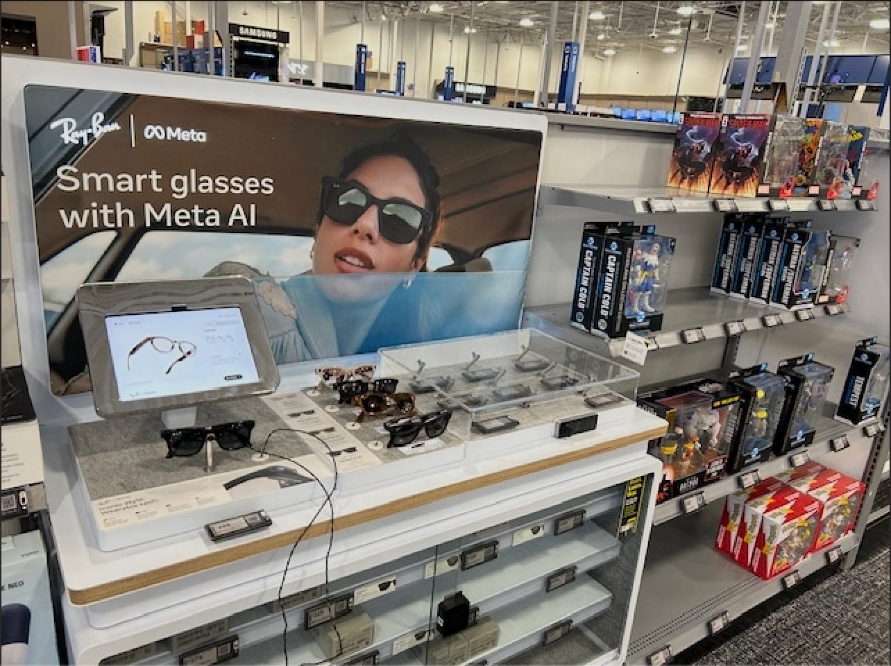 We found the glasses tucked away in the back of Best Buy, next to some Captain Cold action figures. The demo pair looked broken, and I knew in my gut that no one on staff would be able to troubleshoot. I asked anyway, and the employee casually mentioned that a Meta rep had been in the store earlier for an hour, but I’d missed them. His solution? “Just order them online and return them if you don’t like them.” I couldn’t help but think, Is Meta even trying to sell these?