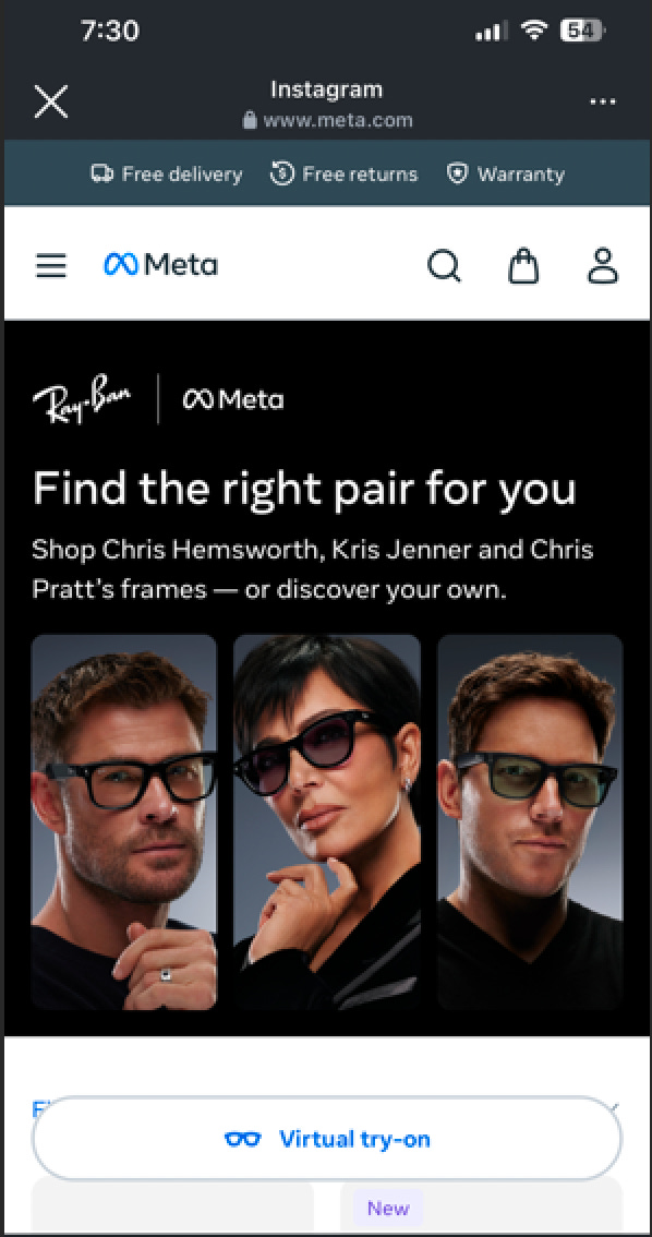 Between the Hulu ads with Chris Pratt and Chris Hemsworth, Kris Jenner popping up on Instagram, and Vogue Business consistently writing about smart glasses—not to mention A$AP Rocky as Ray-Ban’s creative director—it felt like the universe was telling me to write a newsletter on this collab.